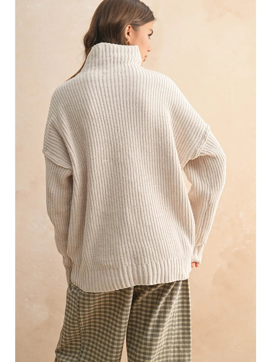 Wrap yourself in comfort with this oversized chenille sweater—featuring a high neckline and chunky knit design that brings both warmth and timeless style.